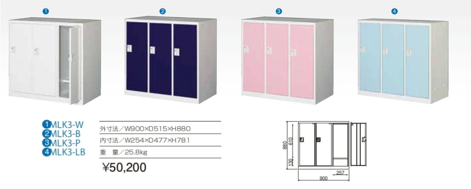 | 商品名 | ALPS ミニロッカー/MINILOCKER MLK3-W・B・P・LB 3人用横型ロッカー 研修生用ロッカーに最適 |
