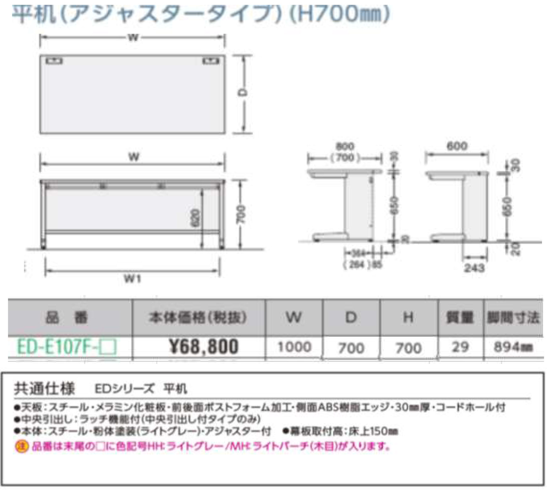 P-7302 中古◆LION EDシリーズ 平机 ED-D107F-HH W1000xD700xH700 ライトグレー