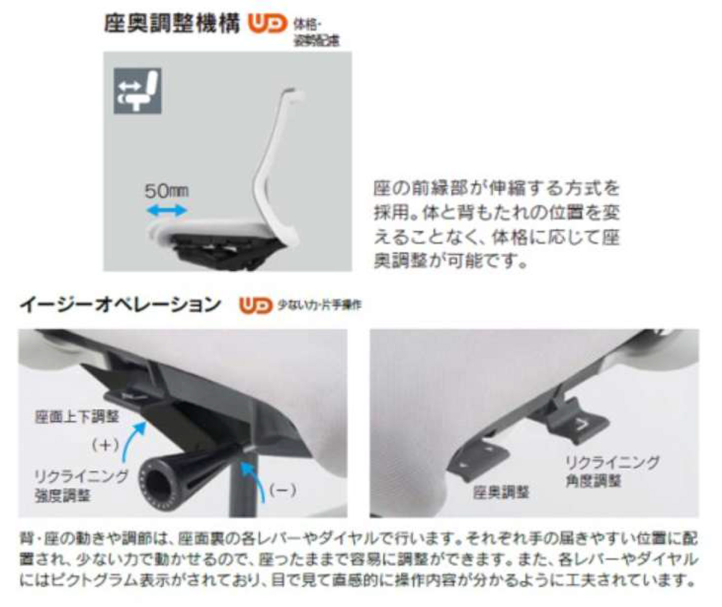 座奥調節機構:最大50mm