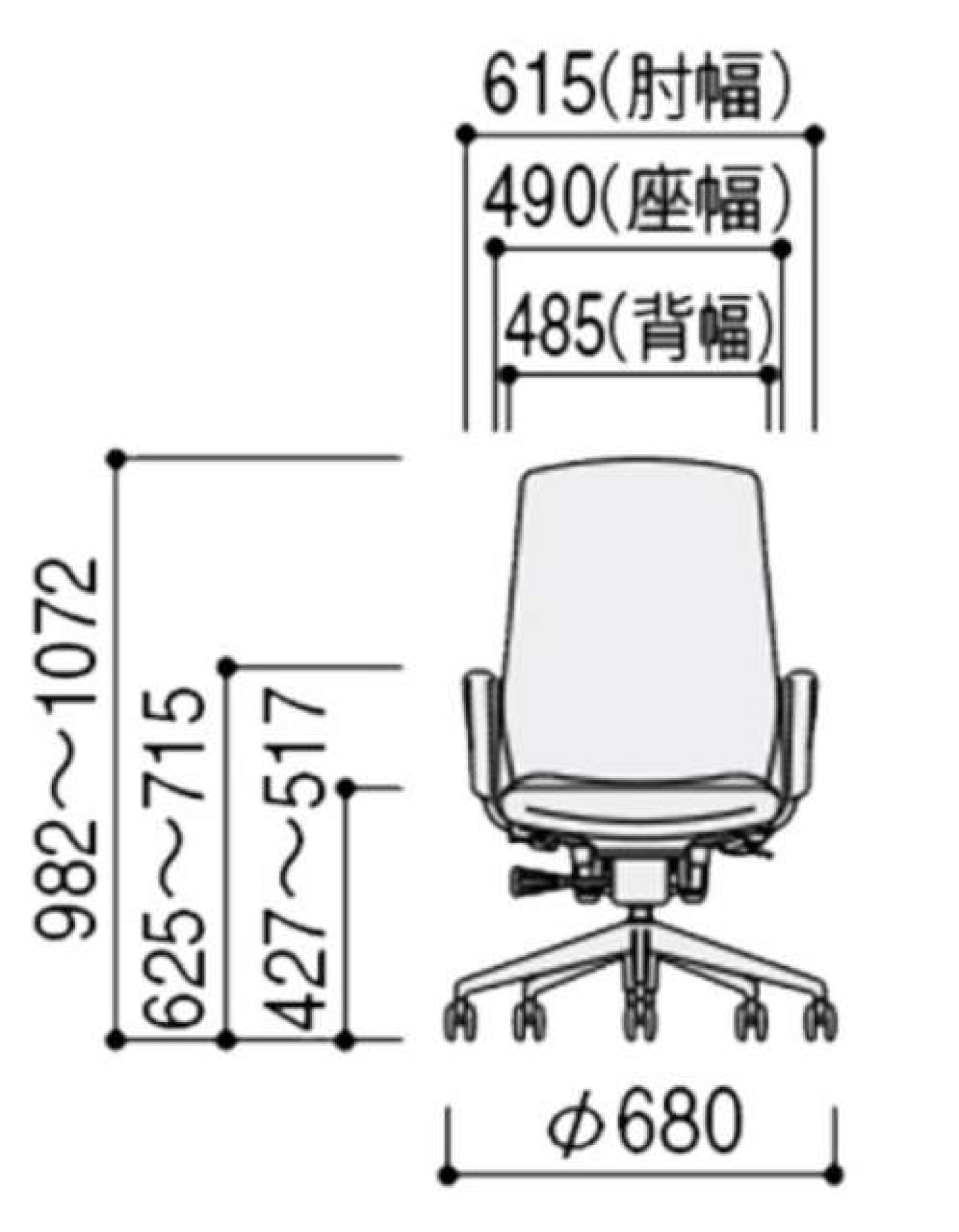 サイズ 横幅615×奥行595×高さ982~1072(mm) 昇降:90(mm) 座高427~517(mm)