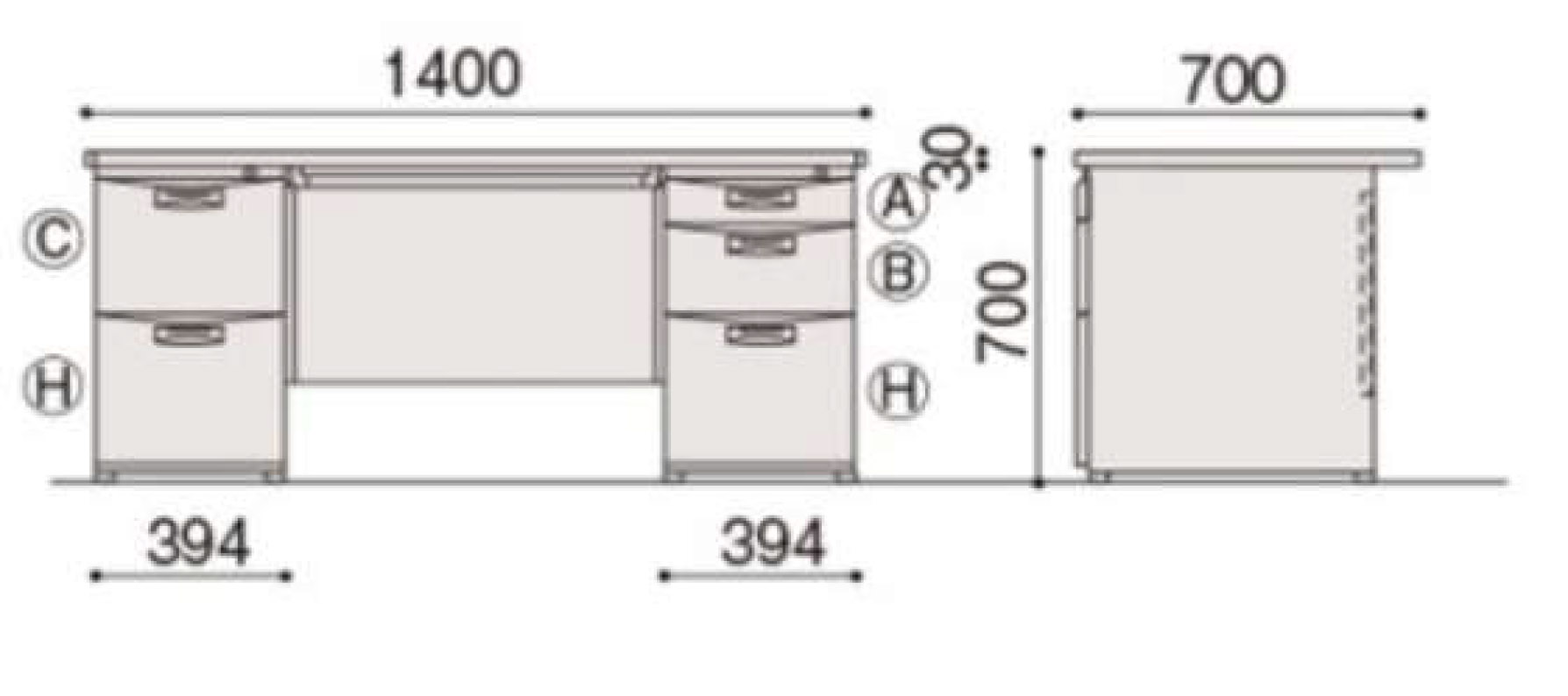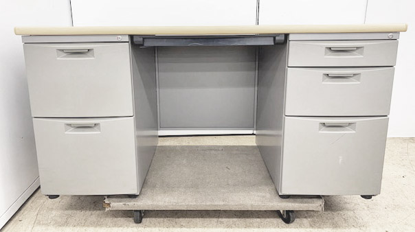 4. P-7524 中古◆ITOKI CZデスク/両袖机 CZX-147BA-WE94 メラミン木目天板