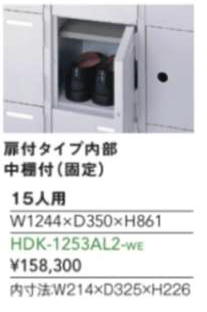 | 商品名 | P-7466 中古◆ITOKI 5列3段15人用シューズボックス 飛田付き・中棚付き・鍵なし HDK-1253AL-WE |